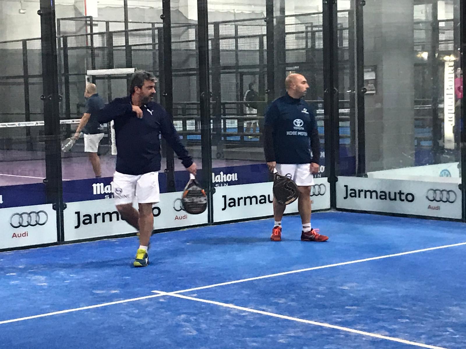 Segundo partido: Entraban nuestros más padeleros callejeros (padel agro, pero muy eficaz ) Santi y Botox. Un sabio que estaba sentado a mi lado dijo “ 6/1 6/2 perdemos en 20 minutos” ….. pues todo lo contrario, primer set 7/6 abajo incluso tuvimos 5/6 arriba con saque, pero al final no pudo ser y el segundo set perdimos por un contundente 6/0. Pero la verdad a los rivales eran muy duros.