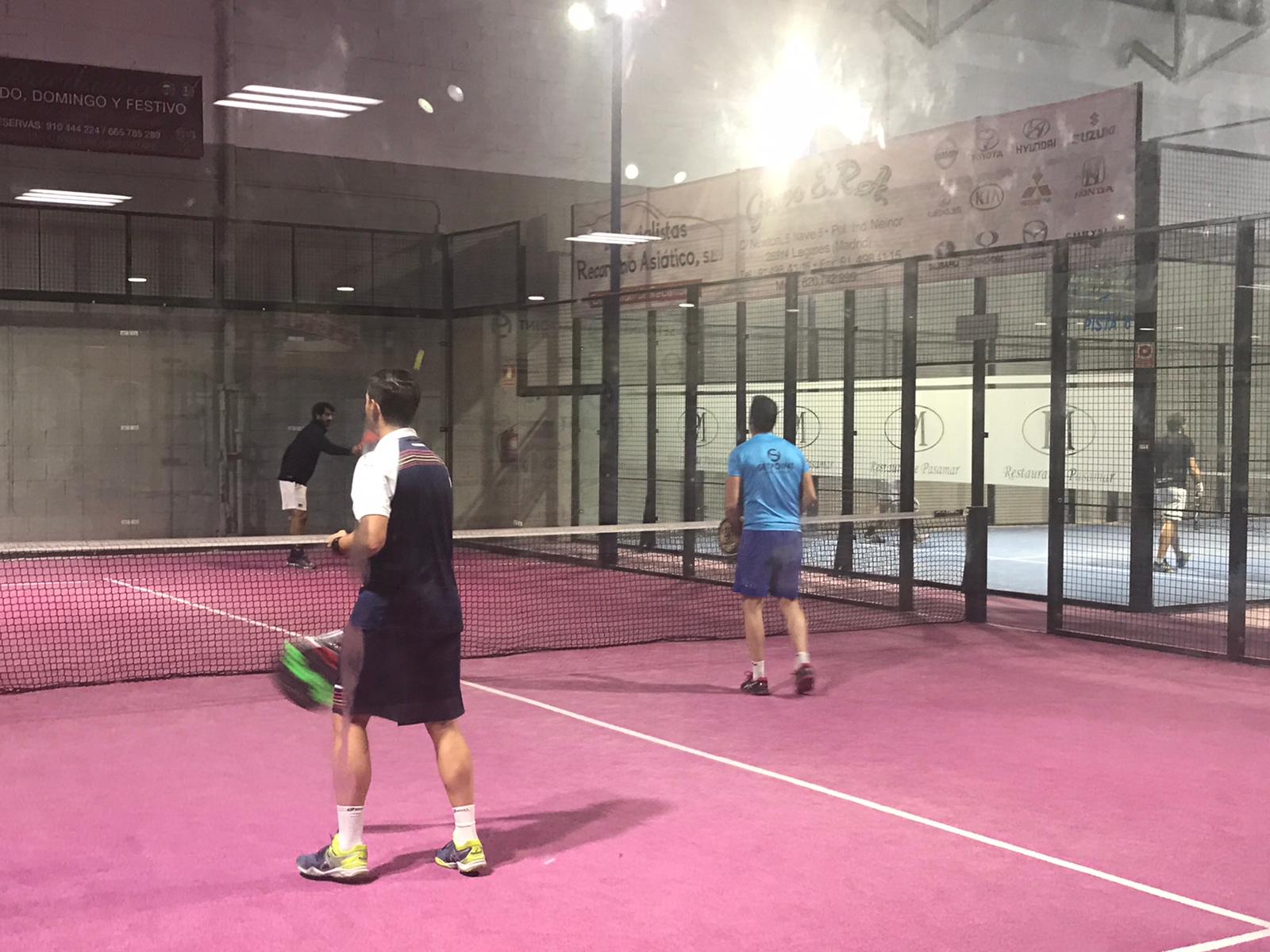 * En la pista número 1 el señor Hazañas y el Sr Pastor hicieron partido a a Vaquero y su compi. Si, habéis leído bien, hicieron partido hasta el 2/2; ya después fue de carrerilla para ellos. El de la derecha tranquilo, tenía menos estilo que Blanquini, pero muy eficaz y devolviendo todo y Vaquero lo que le venía por arriba lo reventaba.